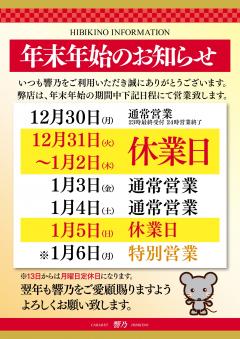 今年の営業は1月3日(金)の19時より営業とさせて頂きます。
